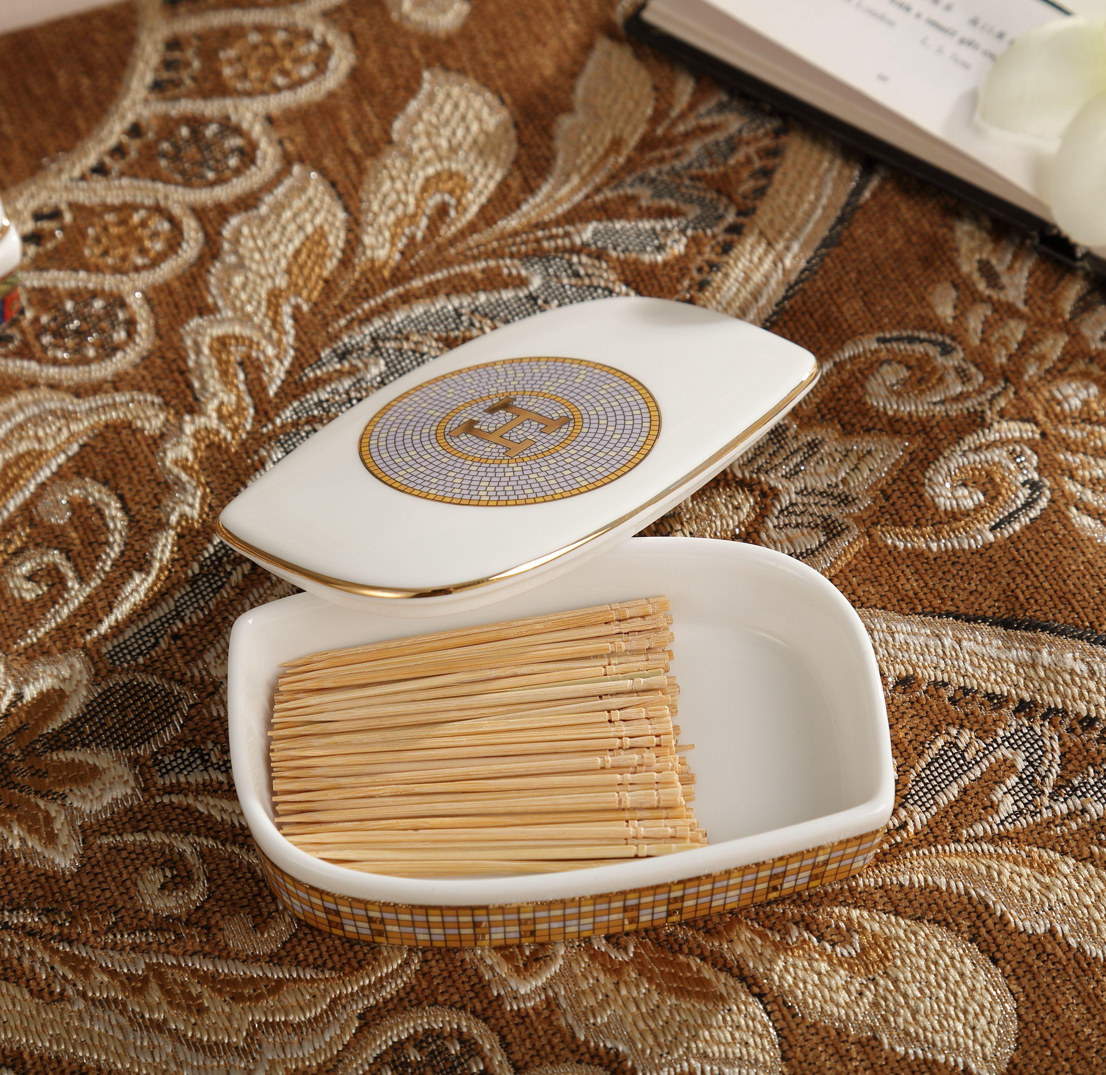European style ceramic toothpick box home table toothpick barrel cotton swab hotel toothpick bucket creative home ornament ornaments