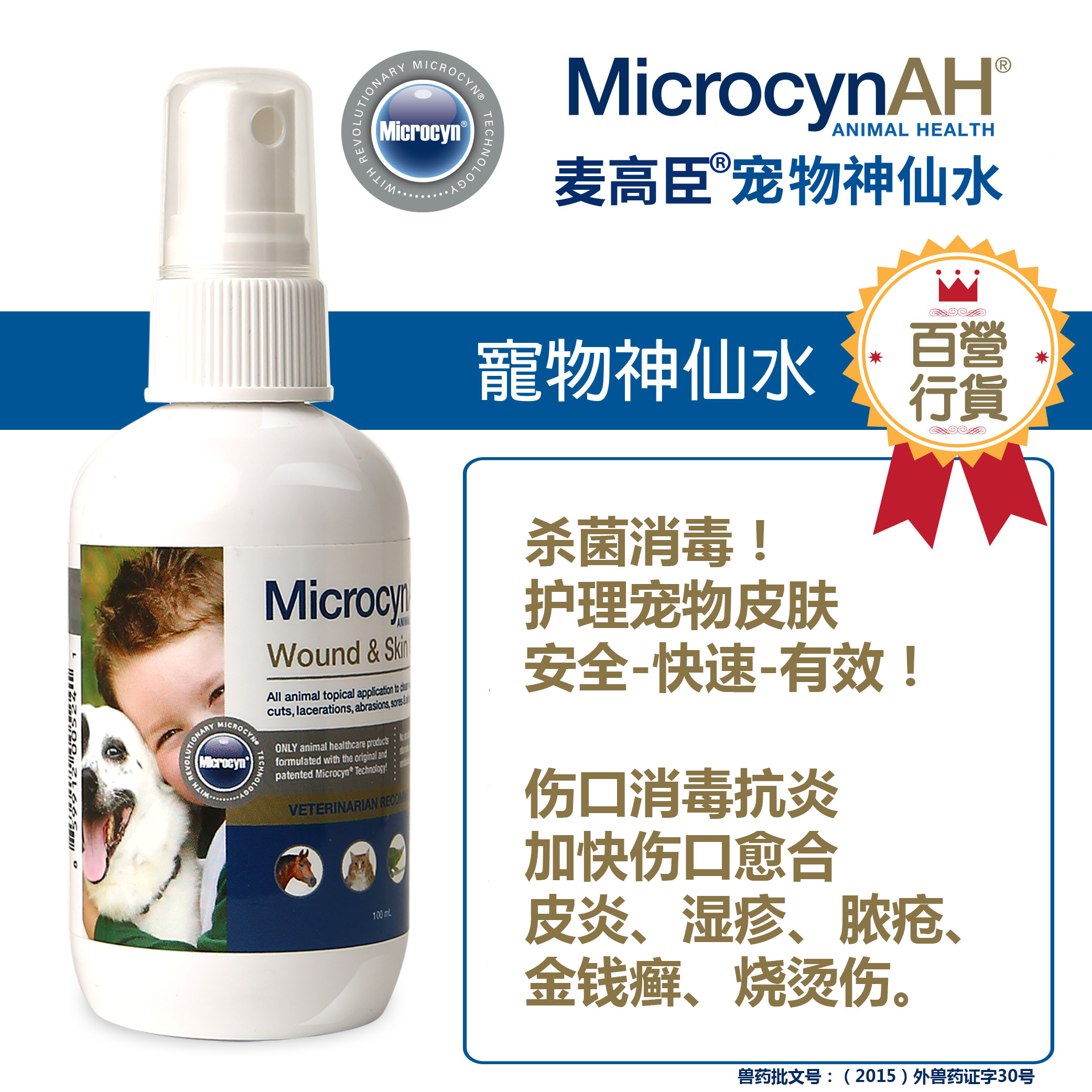 American Microcyn McGaochen pet fairy water dog cat fungus pus skin 100ML rhinoceros
