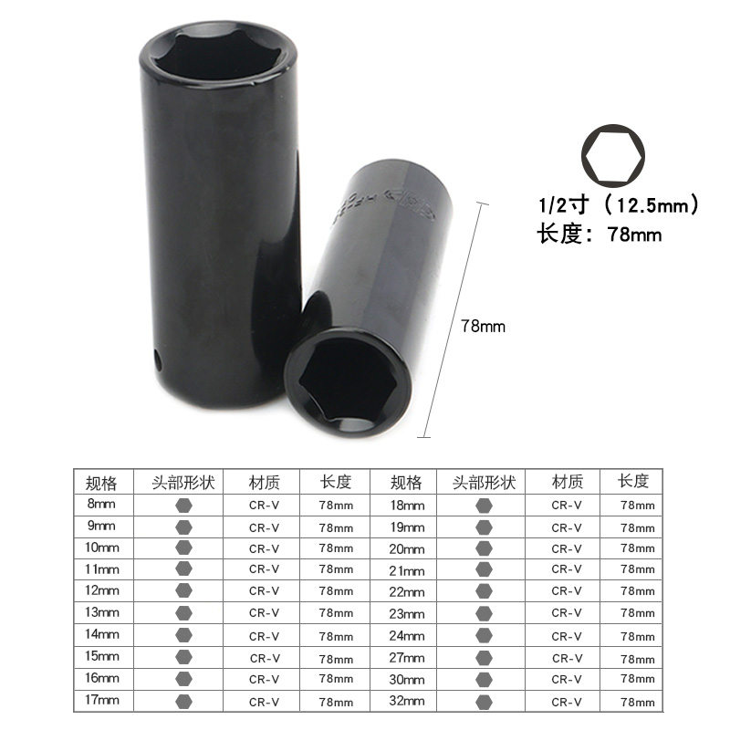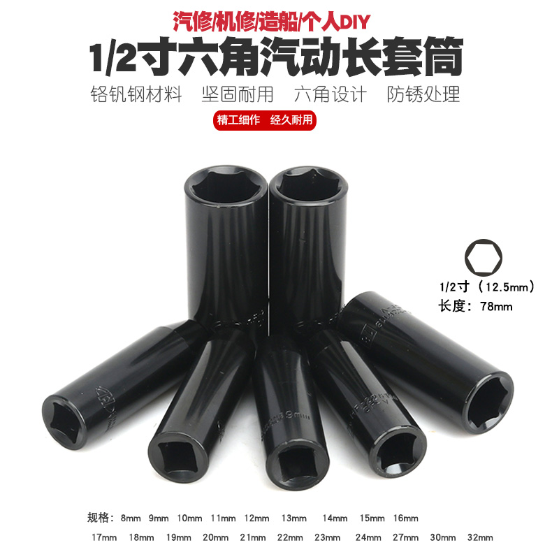 1 2 lengthened pneumatic hexagonal pneumatic wrench socket large flying ratchet hexagonal socket head pneumatic hexagonal socket wrench tool