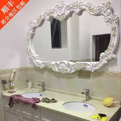 European-style classical double-slot washbasin bathroom mirror Wall-mounted powder room mirror bathroom makeup mirror waterproof villa hotel decoration