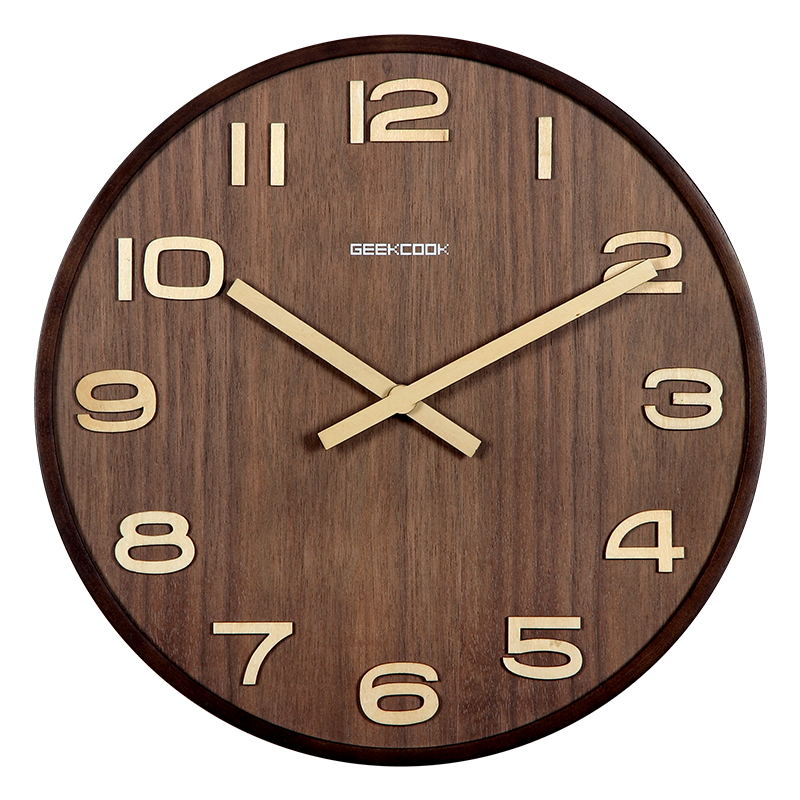 Geek library new Chinese wall clock living room mute clock Chinese style wooden clock simple home clock wood grain hanging watch