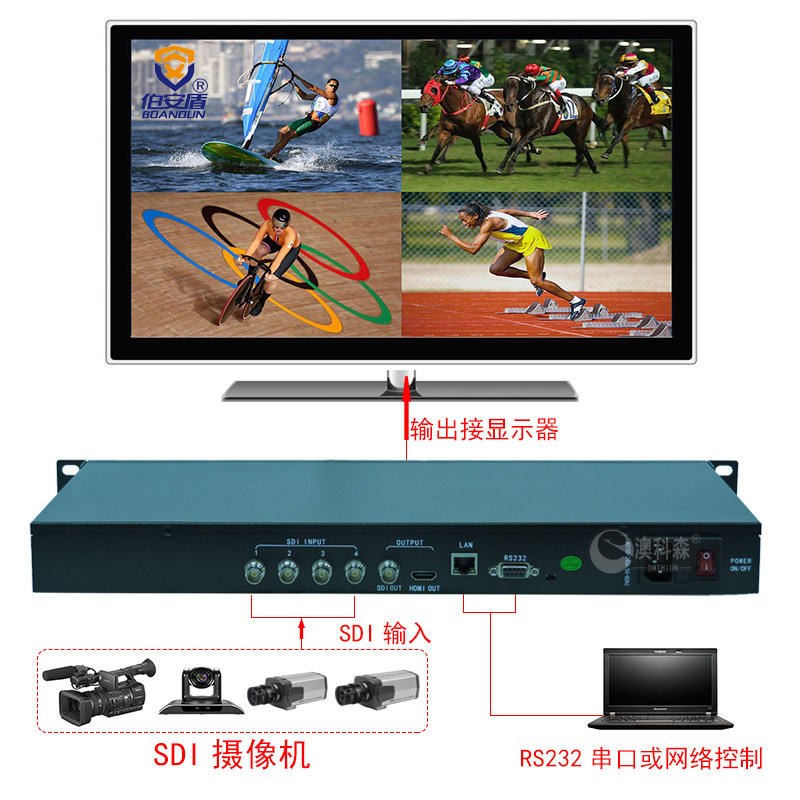 SDI4 four-picture divider 4 in 1-out split-screen instrumental synthesizer image splicing device SDI convert HDMI