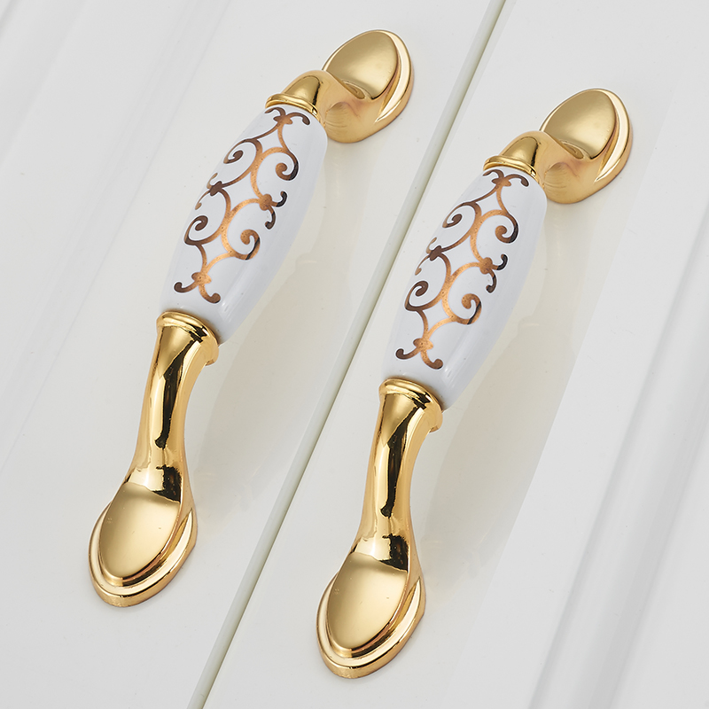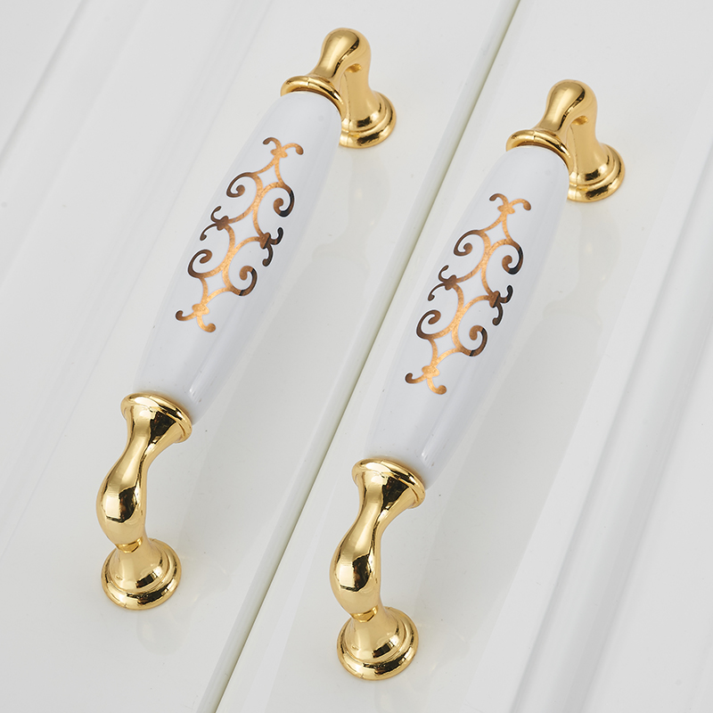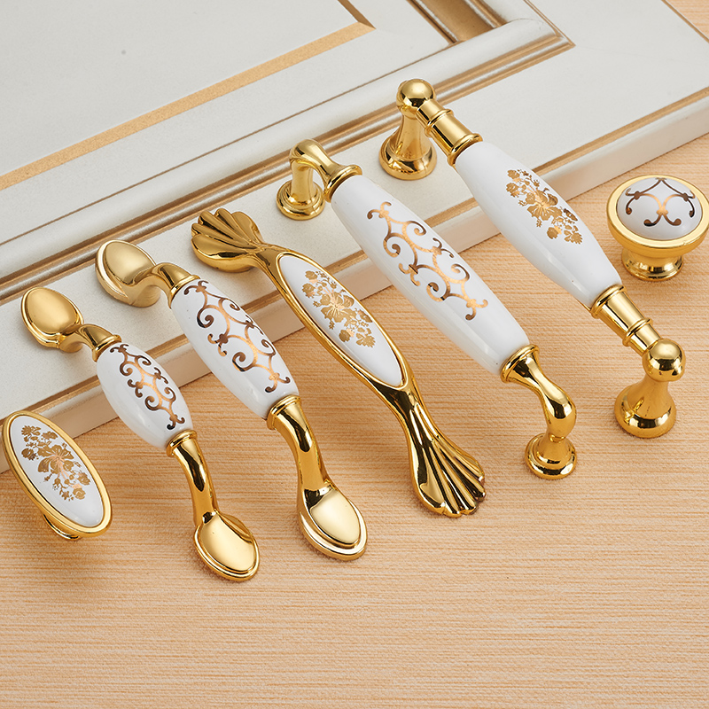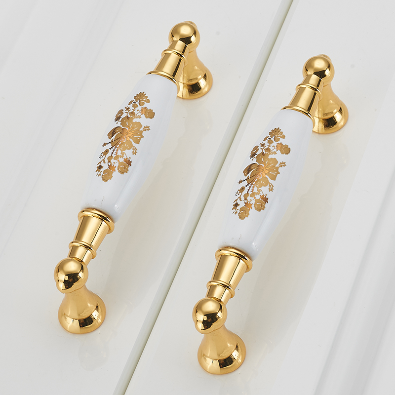 Eurostyle door handles fields solid gold color ceramic whole cabinet drawers wardrobe door handle rich and large gold flower handle