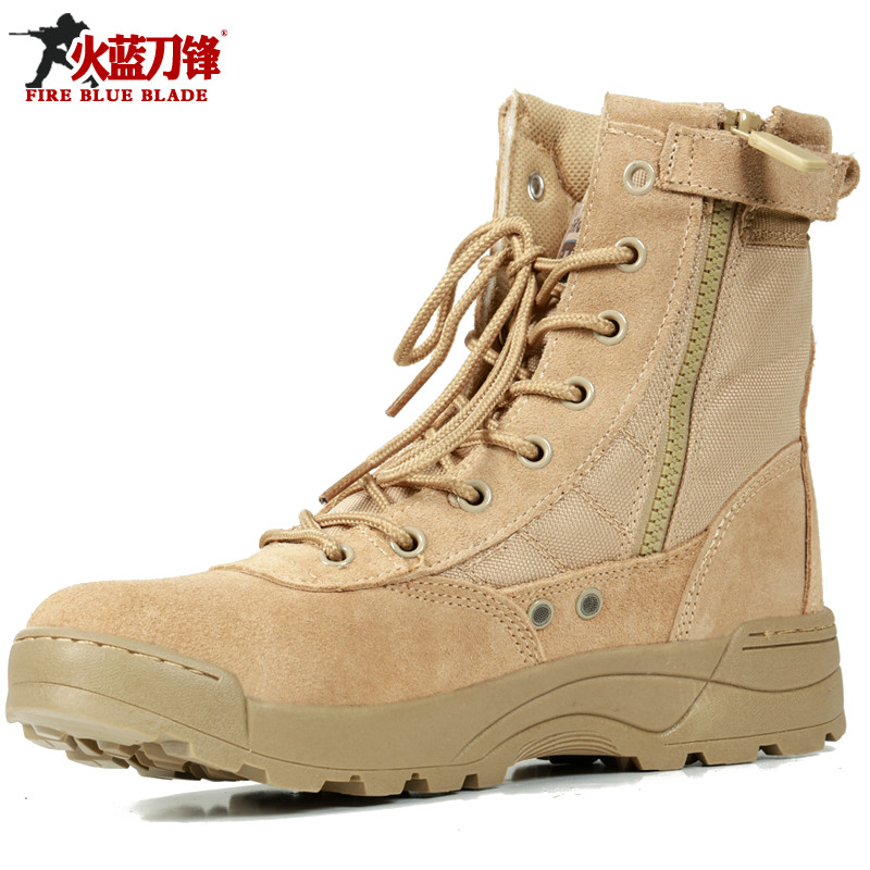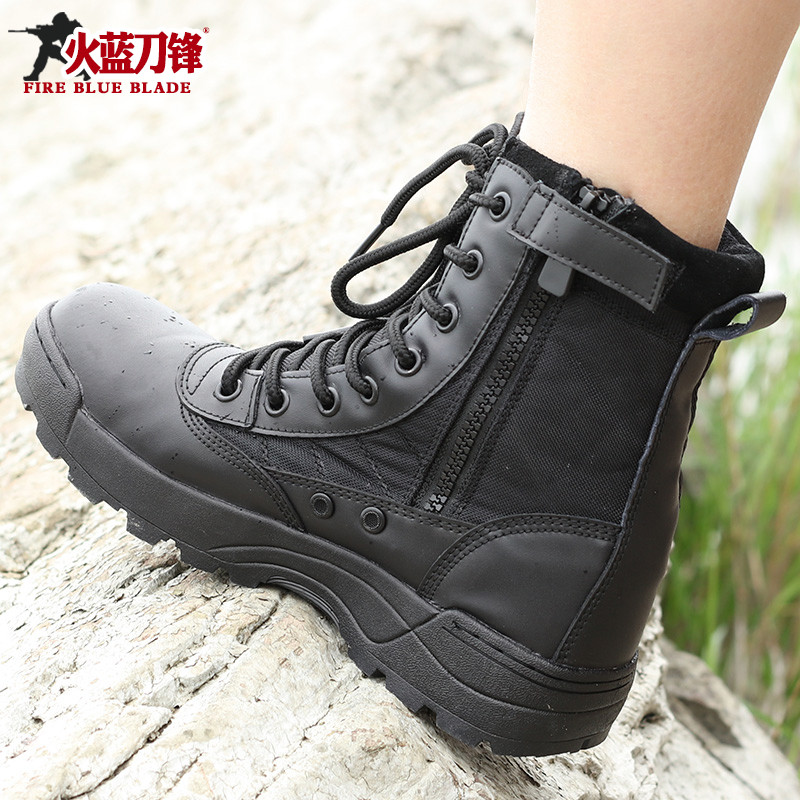 Fire Blue Blade Winter Plus Velvet Warm Zipper Army Fan Boots Special Forces Combat Boots High-Top Desert Land Combat Hiking Boots
