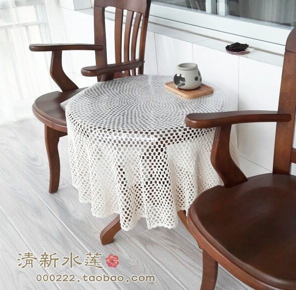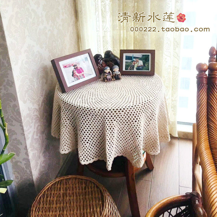 Fresh Water Lotus Foreign Trade Pure Cotton Handcrafted Crochet Weave Brief Brief Eu Chinese Hollowed-out Lace Round Table Bumi White