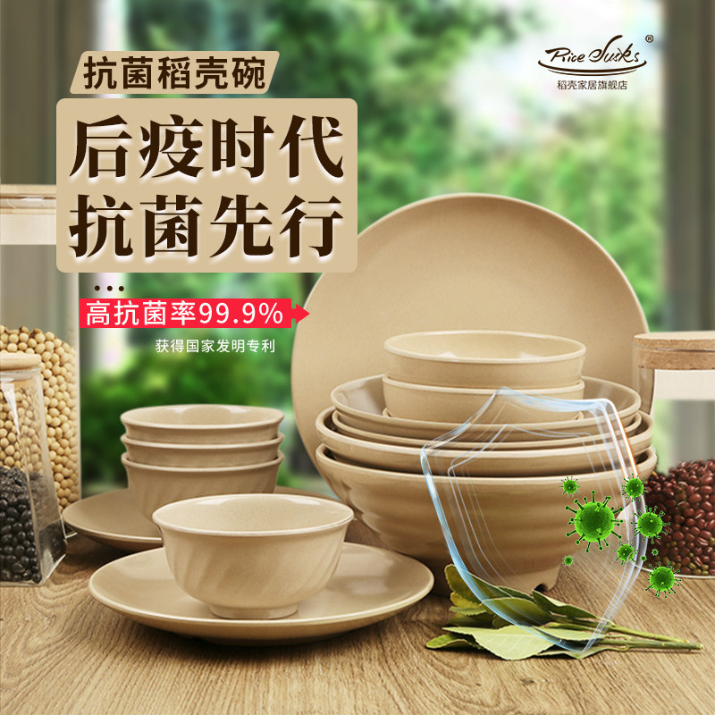 Rice husk bowl Chinese style home mildew-proof and burn-proof and easy to clean healthy and environmentally friendly tableware suit round bowl rice husk
