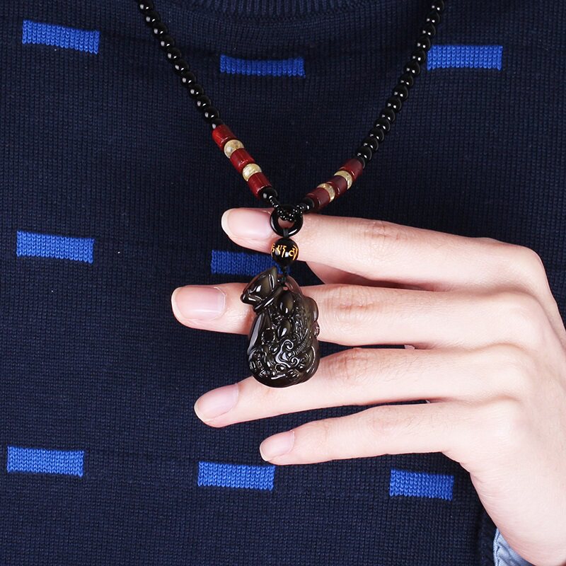 Natural ice species Rainbow Eye Black Shine Stones leopard Pendant Money Bag for men and women Lovers Necklace Hanging Ornaments