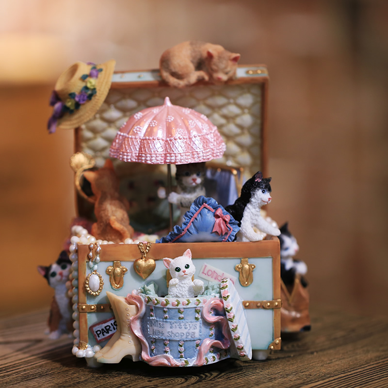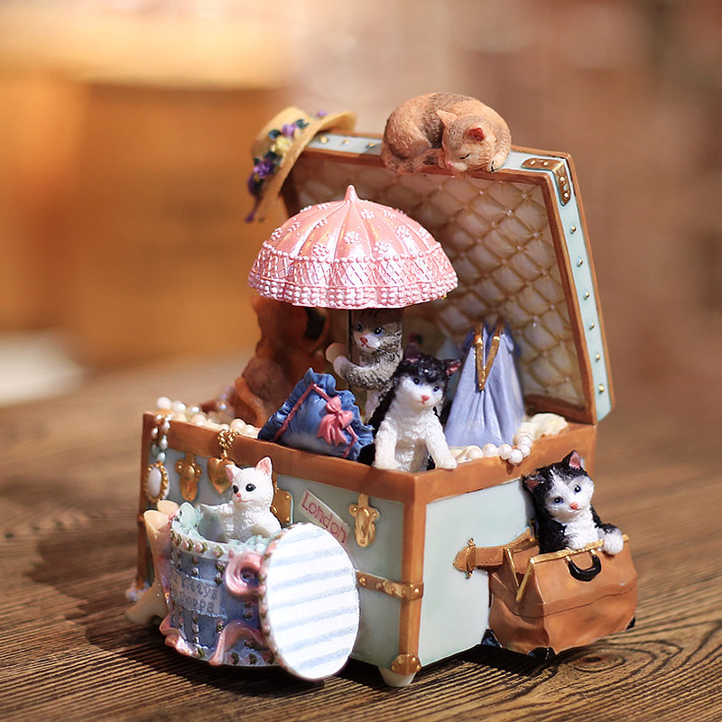 Cat jewelry box Music box Music box Vintage creative ornaments Valentine's Day Birthday gift to goddess children