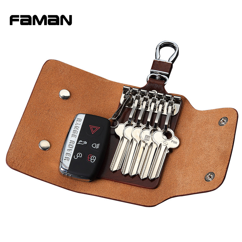faman large capacity genuine leather key bag men's waist hanging cow leather female style car multifunction lock spoon creative