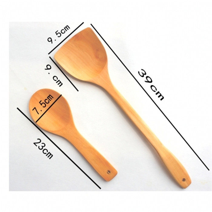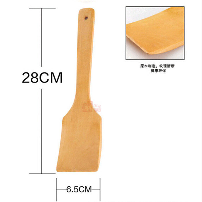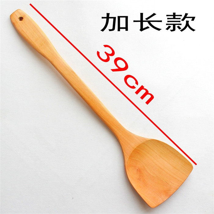 Kitchen non-stick special wooden spatula Paint-free beech spatula Extended handle cooking spatula High temperature kitchenware spatula