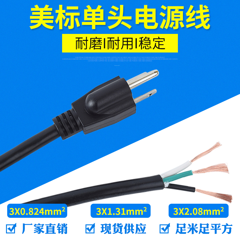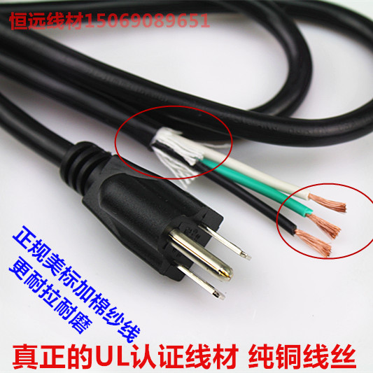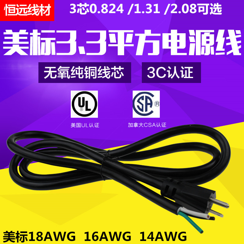 UL certification American power cord three holes 3 cores 0 824 1 31 2 08 square 16AWG US standard plug wire