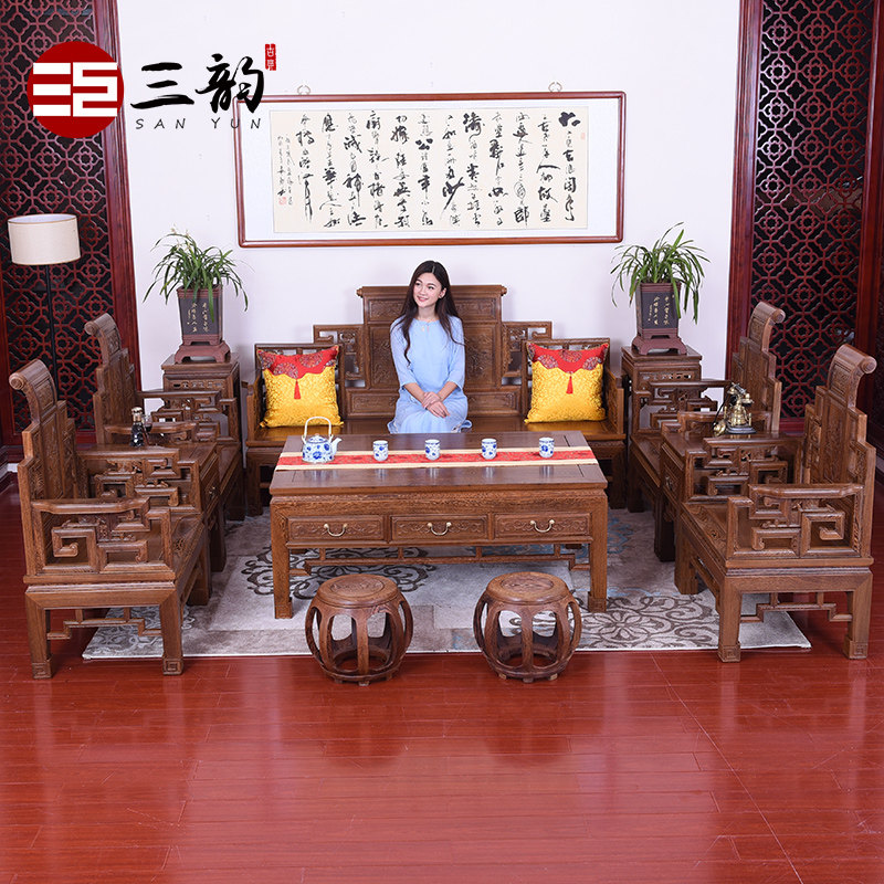 Wenge wood sofa combination 8-piece set of new Chinese mahogany furniture antique mahogany sofa living room solid wood sofa