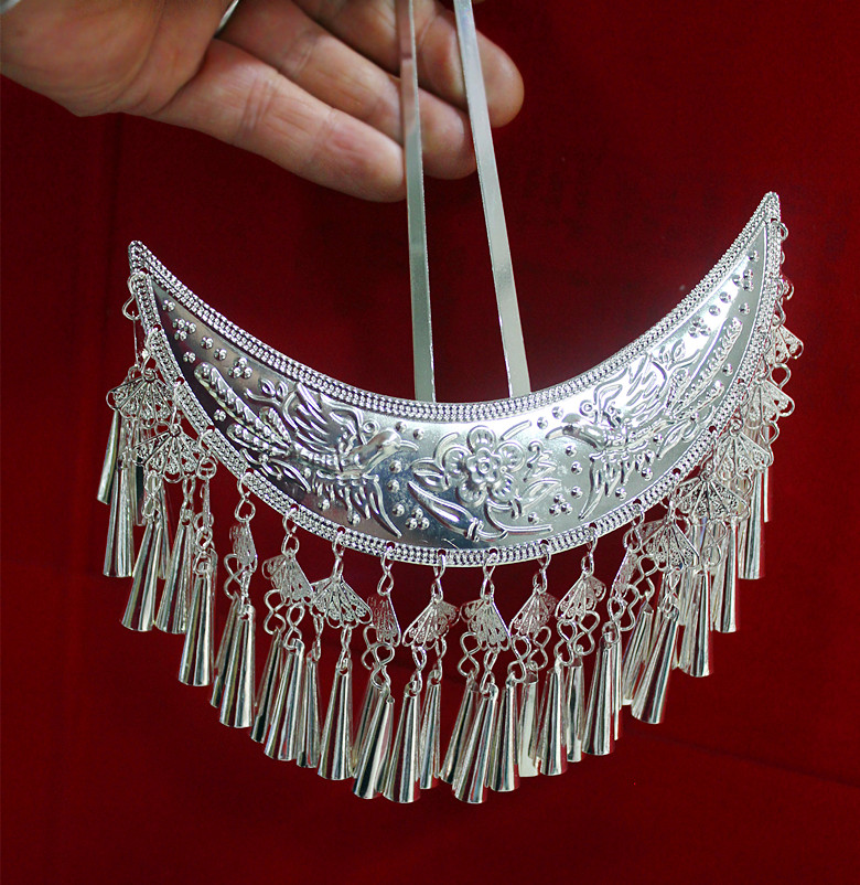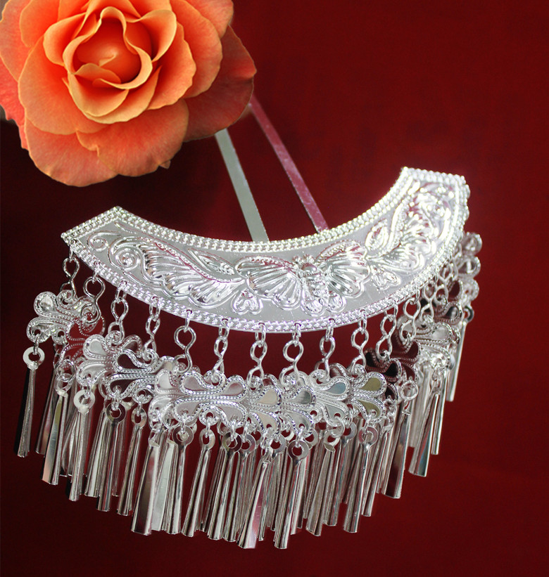2020 new Guizhou Miao headdress hat collar Miao silver stage performance costume headdress short head hairpin
