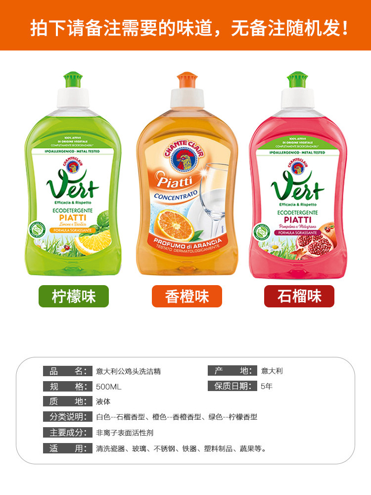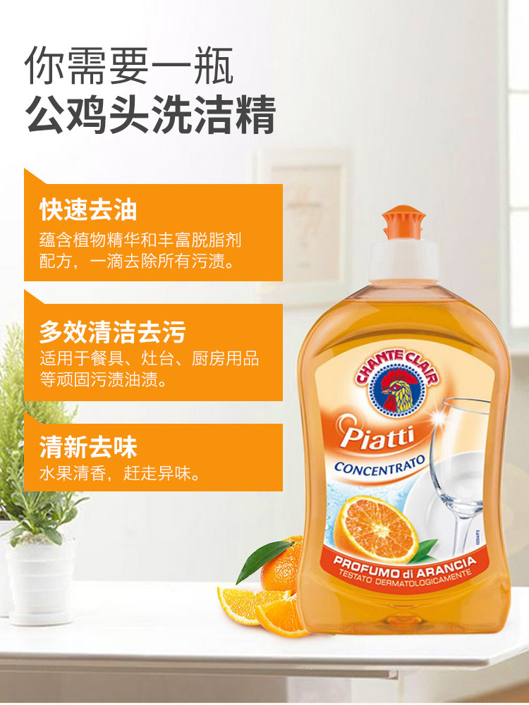 Italy imported big rooster head detergent Household concentrated dishwashing liquid Fruit and vegetable tableware kitchen cleaner * 3