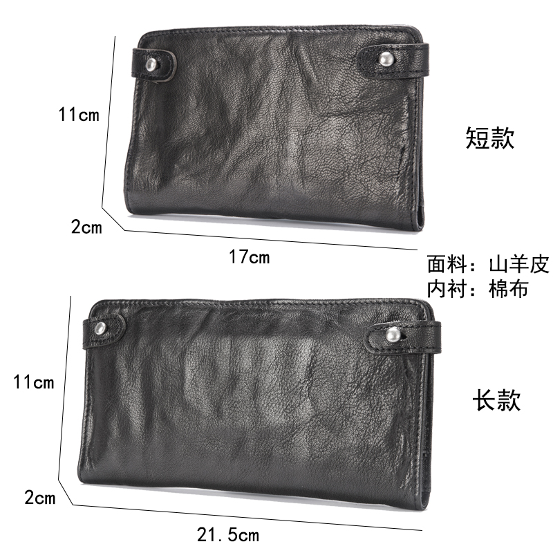 Men's multi-function small handbag long wallet Genuine leather vintage handmade wrinkled sheepskin clutch Passport leather wallet tide