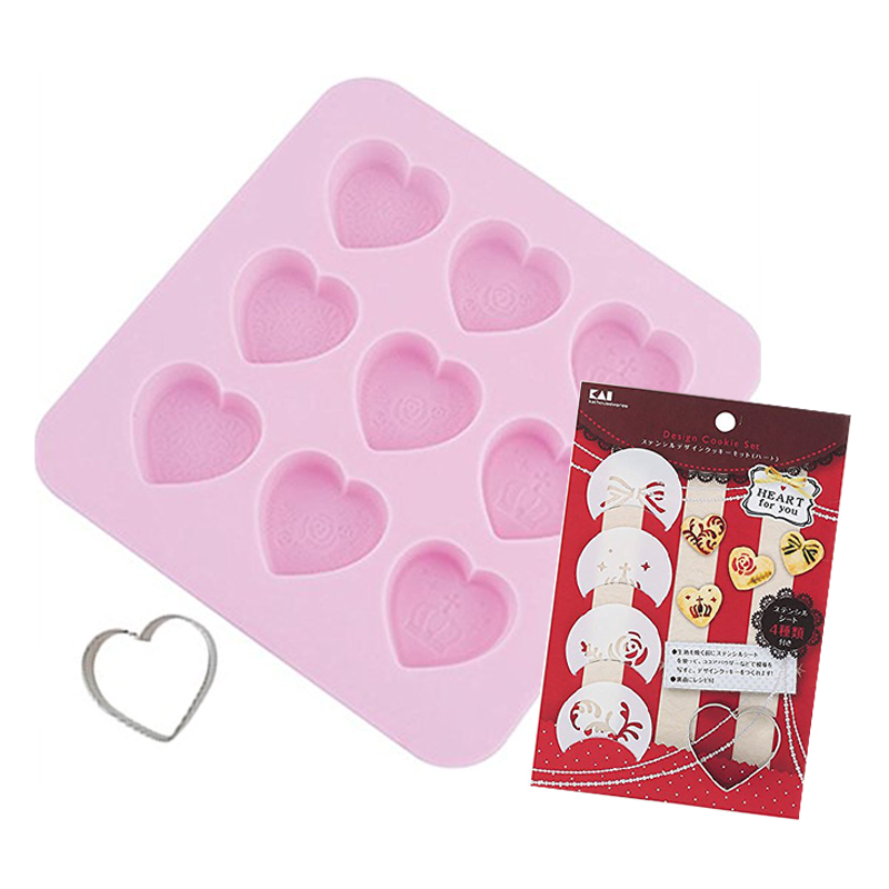 Biscuit Wax Paper Mold Set (Heart shape)FP-5396 2-layer Chocolate Biscuit mold (heart shape) FP-5400 Chocolate Aluminum foil mold (Heart shape-small-12pcs)D