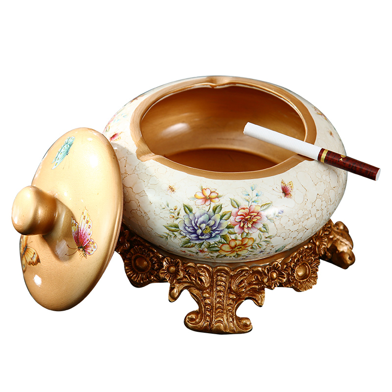 Vintage European ashtray large fashion with lid personality creative ceramic ashtray living room decoration gift