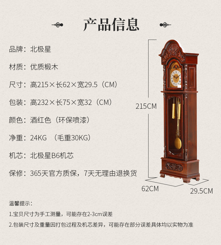 Polaris floor clock High-grade solid wood Chinese fashion simple modern living room standing clock mechanical clock decorative grandfather clock