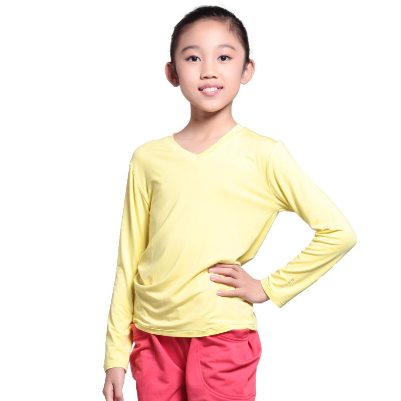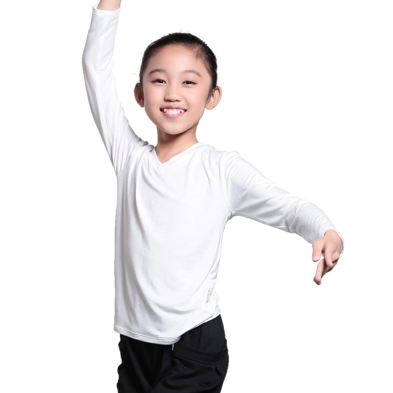 Baiwu children's dance practice top comfortable and casual V-neck long-sleeved T-shirt bottoming shirt 115220502