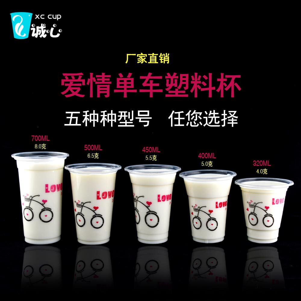 Disposable Milk Tea Cups Plastic Cups Drinks Cups Soy Milk Juice Cold Drinks Cups 1000 Love Cycling Cup