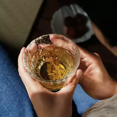 Early snow thickened glass Transparent heat-resistant hammer mesh teacup Tea cup Japanese handmade drinking cup set