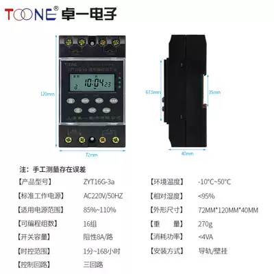 ZYT16G-3a Zhuo Yi three-way time control switching power supply circulating street light box timer multi-loop time control