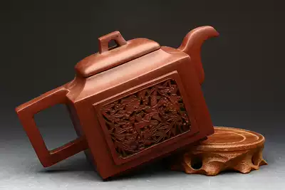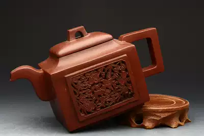 Taiwan returning old purple sand pot master master Ming and Qing old pot Qing Dynasty official kiln single hole square hollow flower bird