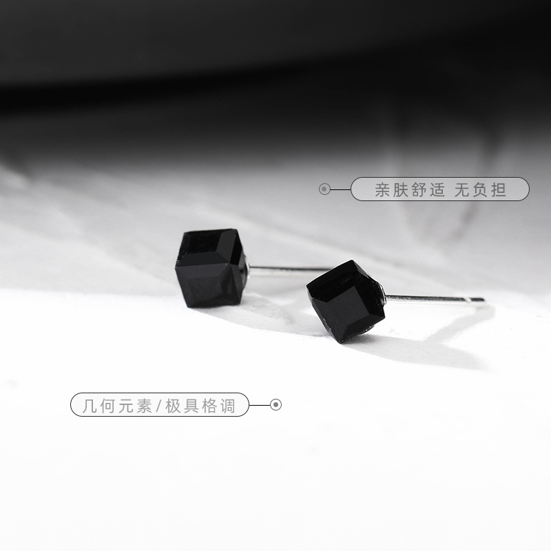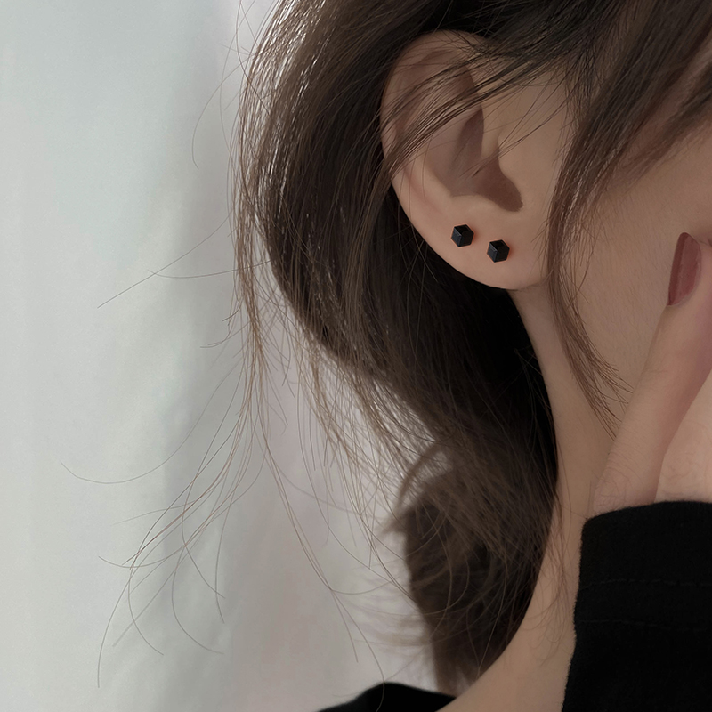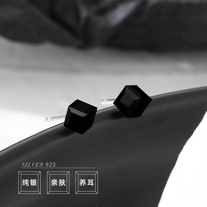 Black Anau s925 square silver ear nails female square temperament with mini geometry