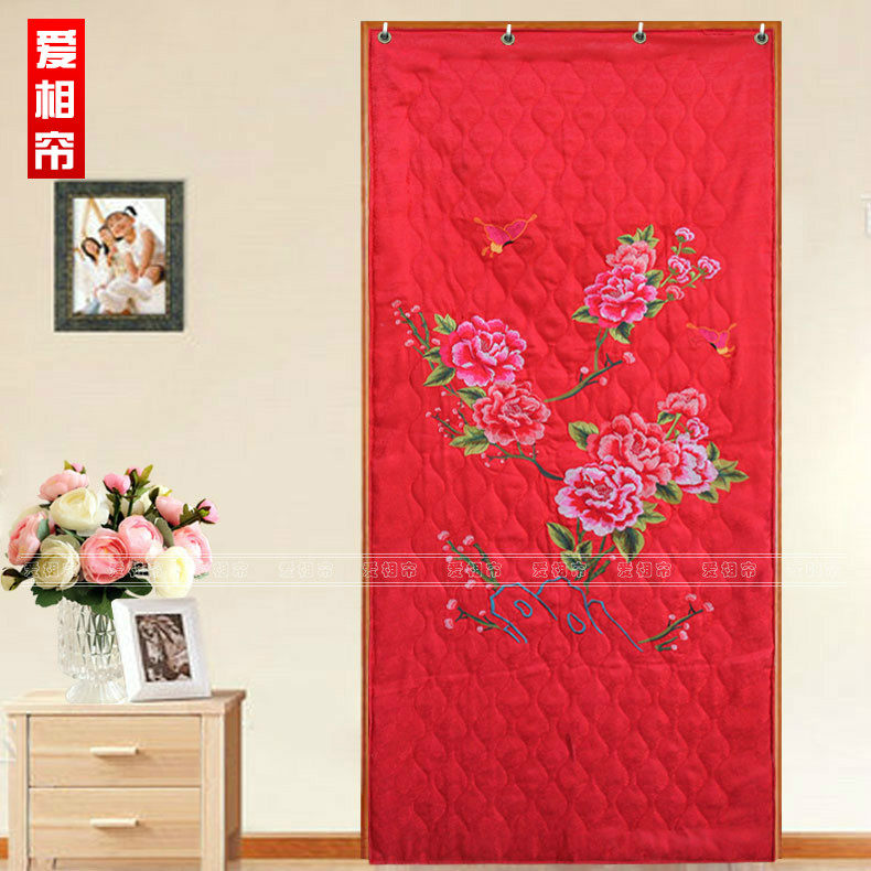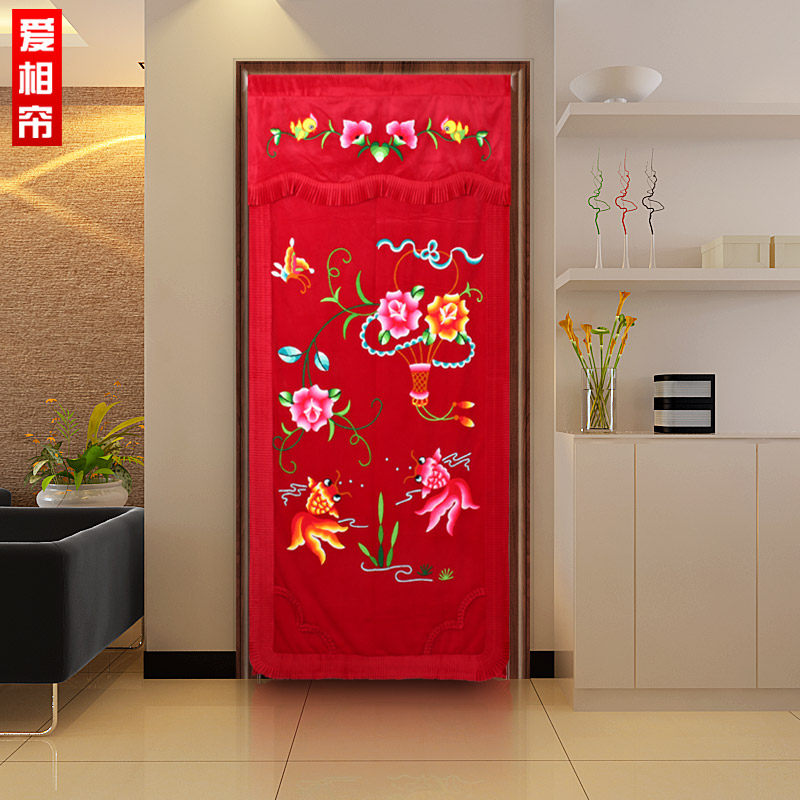 Red embroidered cotton door curtain in red embroidery