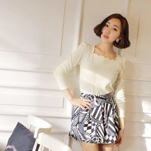 HChen Korea imports spot elegant lady temperament romantic literary princess wave tie shape shape T-shirt