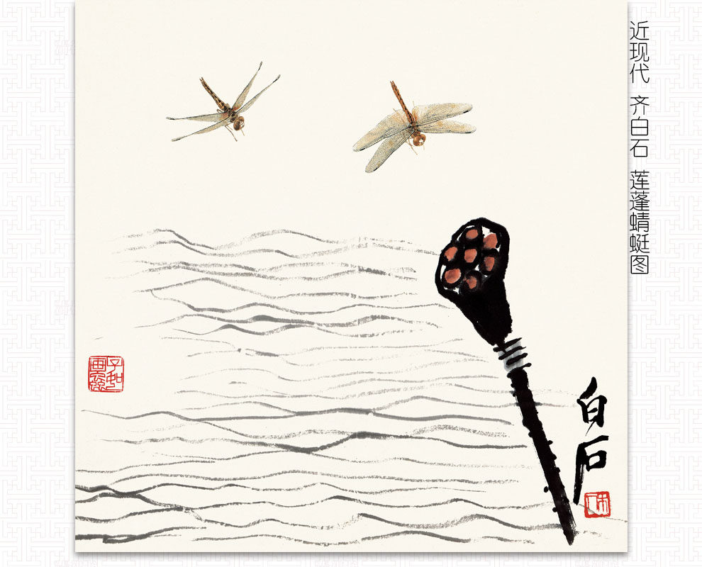 (Qing Qi Book) Qi Baishi lotus pod dragonfly culture hanging painting creative gift silk sketch hanging scroll calligraphy and painting