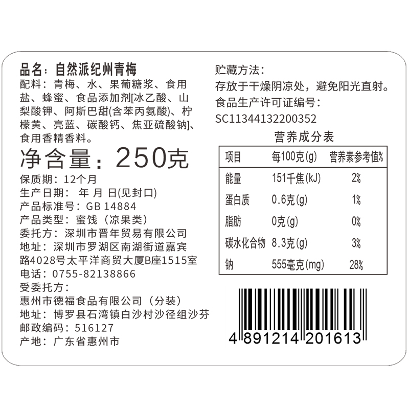 Plum white sugar Honey, etc Please refer to the outer packaging for details