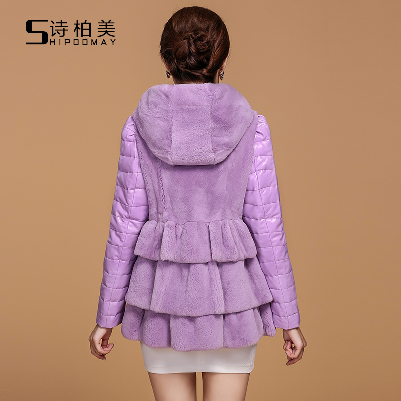 ShipooMay Poem Mei intercepted the autumn and winter rabbit fur coat female fitted with a hat fur coat