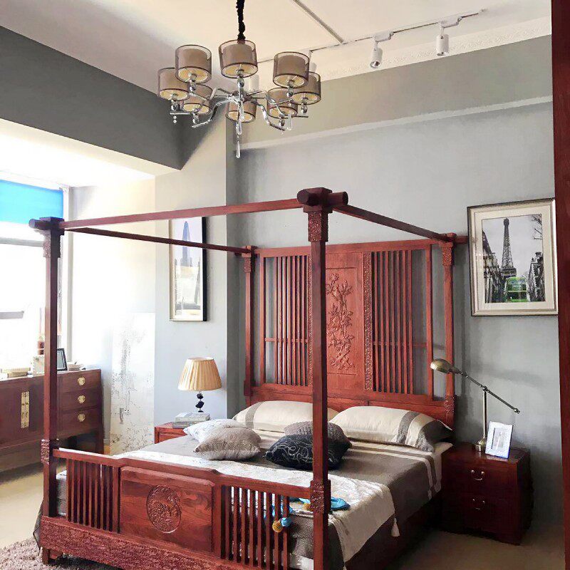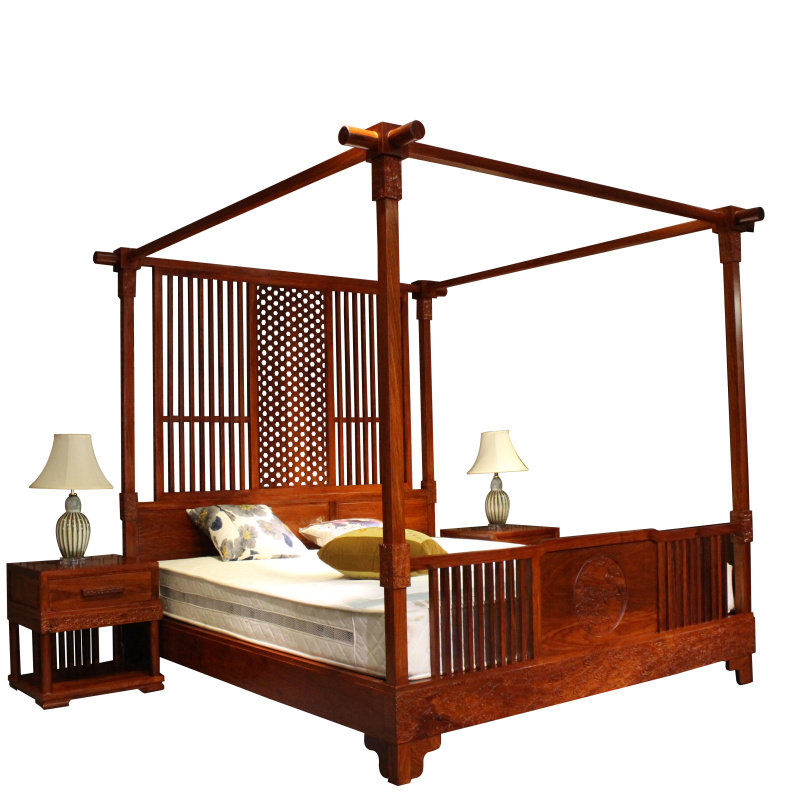QAY home new Chinese style Myanmar rosewood shelf bed Hedgehog rosewood four-poster bed custom pull-out bed