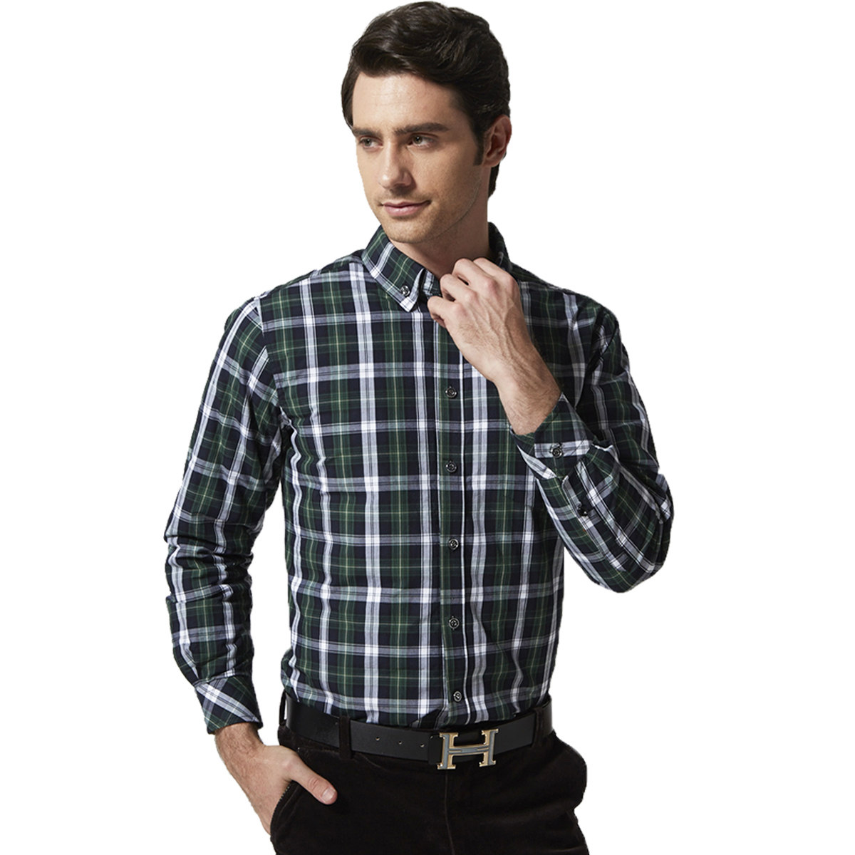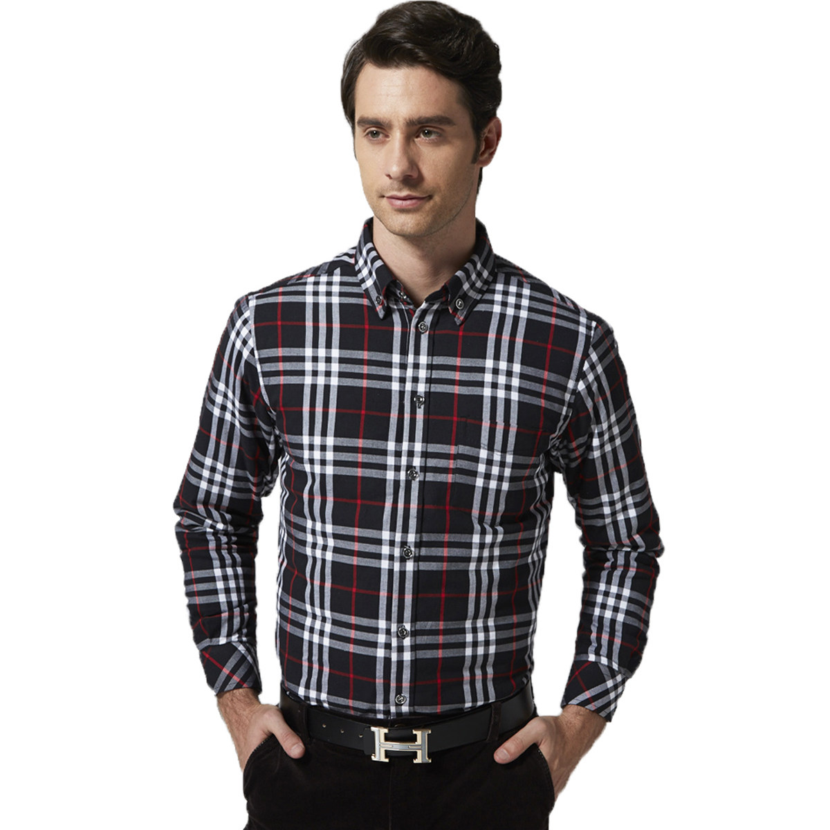 Down shirt men's middle-aged cotton plus velvet thickened long-sleeved shirt youth business warm casual plaid shirt