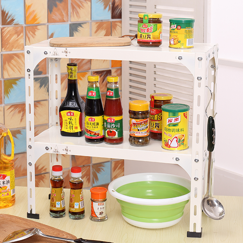 Thickened household small shelves Kitchen display rack angle steel shelves Household kitchen floor-standing microwave oven storage shelf