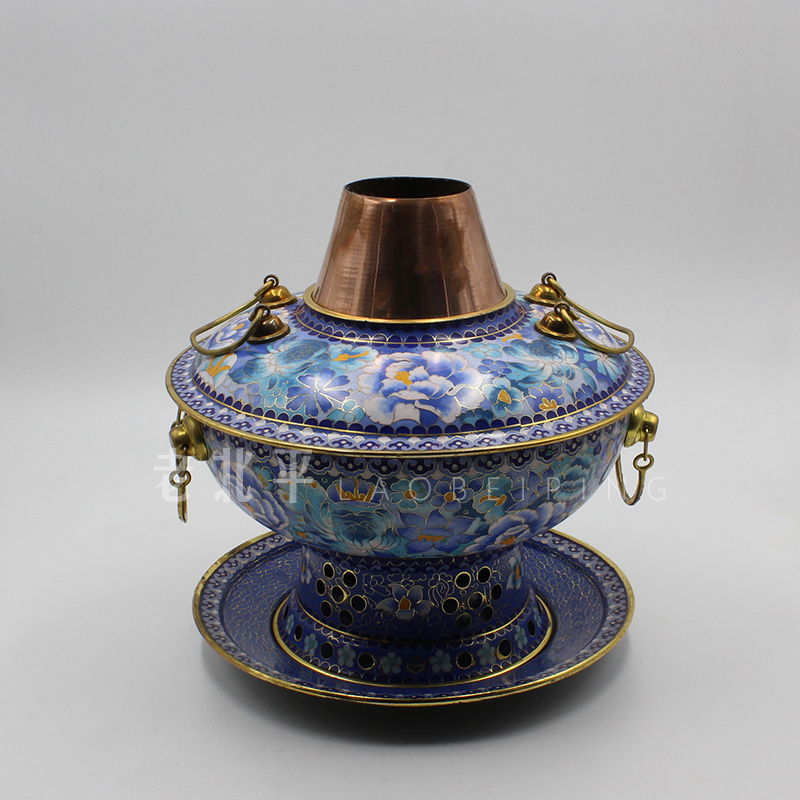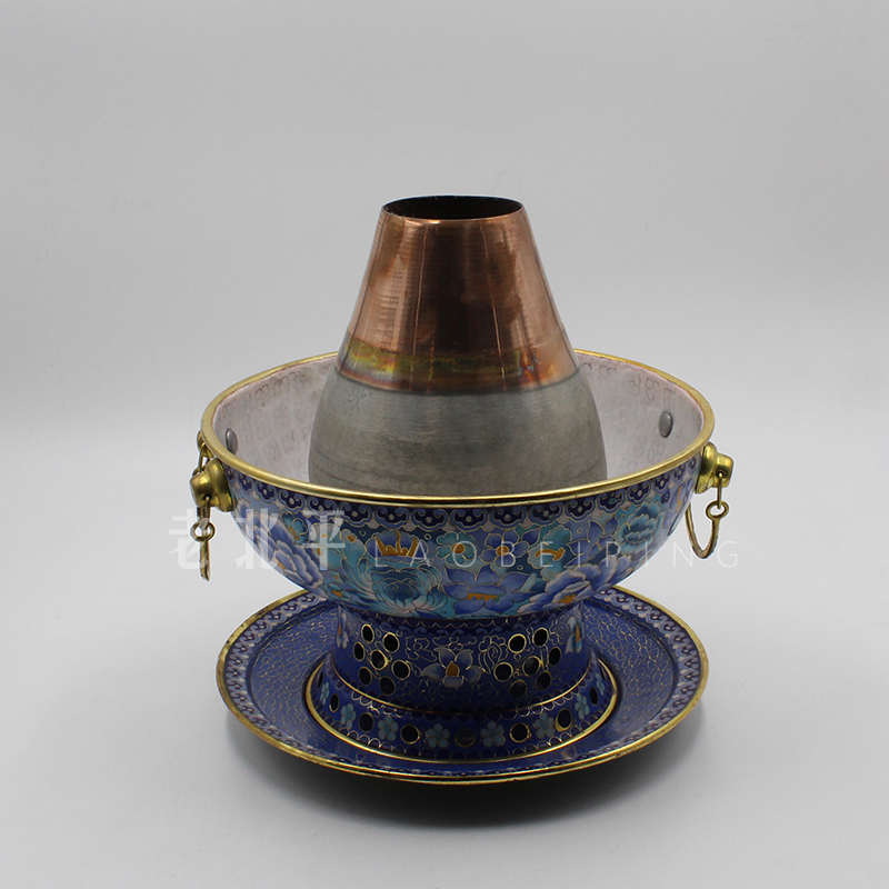Charcoal Copper Hotpot Jingtai Blue Copper Hot Pot Sour Hot Pot Pure Copper Hotpot Beat edge furnace Boiling Mutton brocade Bronze Hotpot