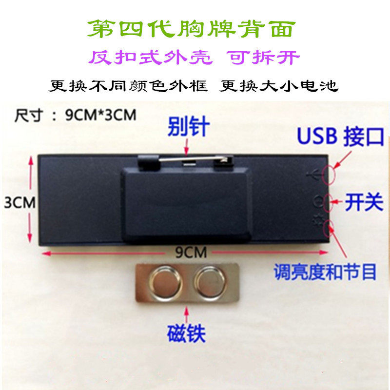 LED four-character electronic badge indoor display luminous badge scrolling business card screen wine offspring driving new badge