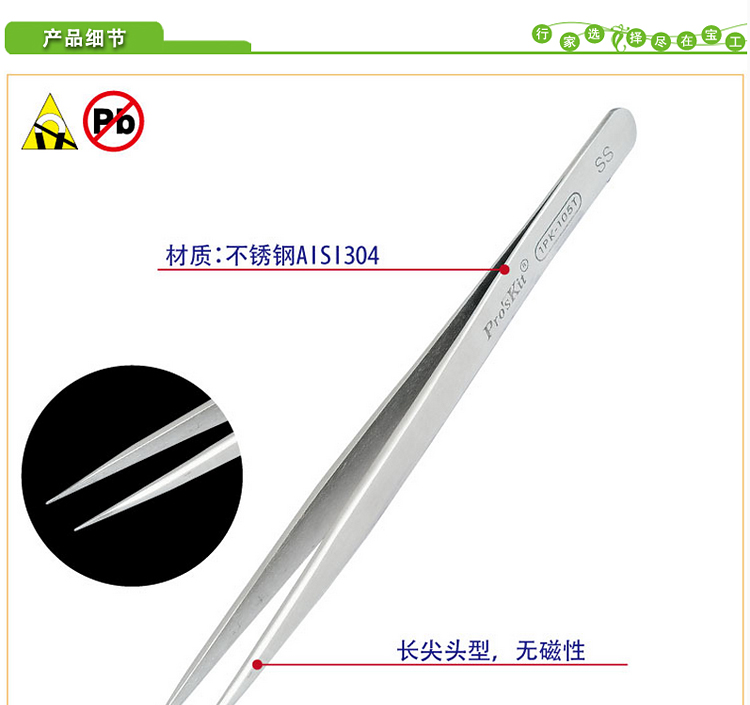 Taiwan Baogong 1PK-105T Stainless Steel Anti-Magnetic Long Tip Tweezers (140mm)