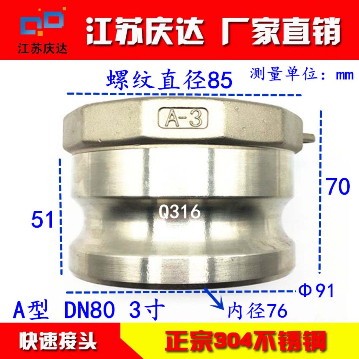 Stainless steel fast joint A type 201304316 kmlm inner wire inner thread industry fast - fitting joint