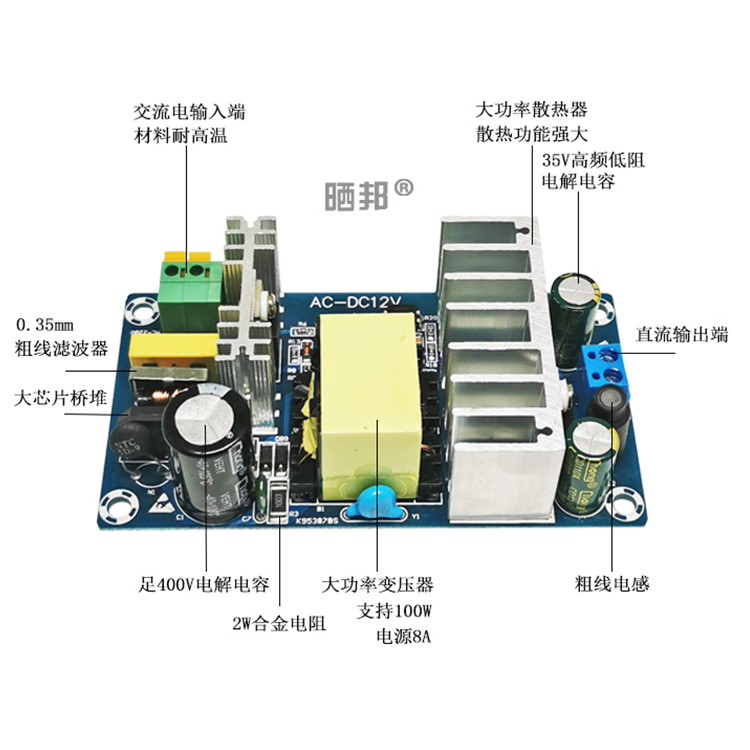 AC-DC switch power supply board 100W12V8A high power power supply module AC85-265V turn DC12V8A