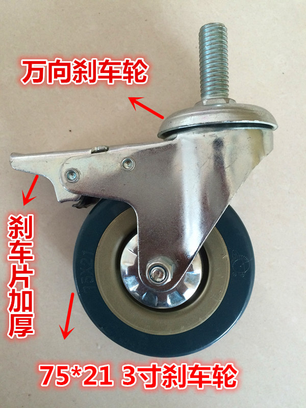 3 inch wire rod grey rubber universal brake wheel furniture accessories light castors 12MM screw rod 75 * 21MM