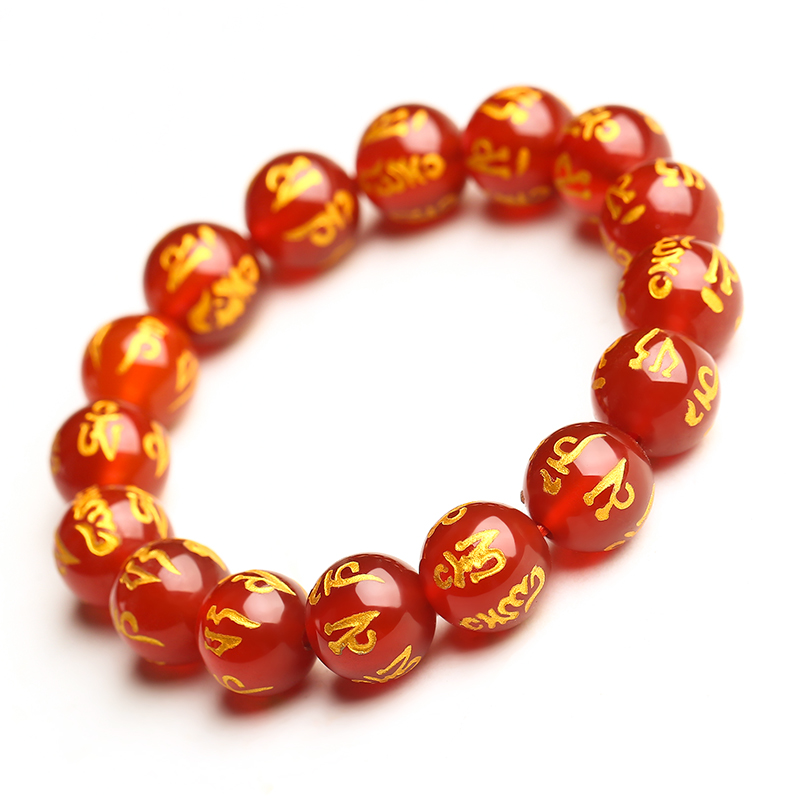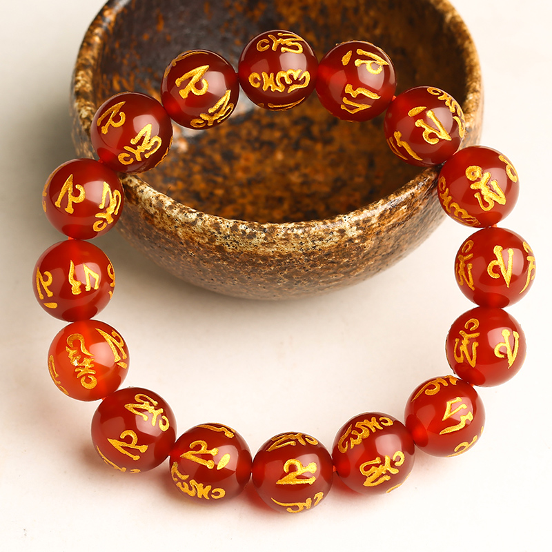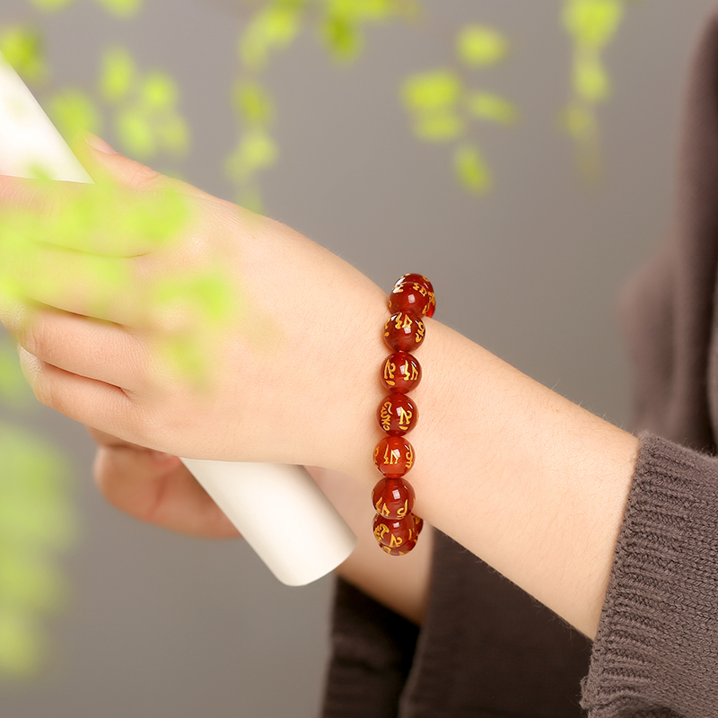 Sanyuan Zhanbao Red Agate bracelet Cow life Year Six-character truth Buddha beads Men's hand string female 2021 mascot