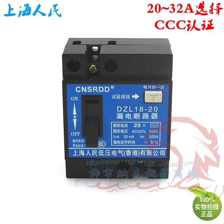 Shanghai people DZ18L-20 32A20A leakage circuit breaker household protector single-phase switch copper parts