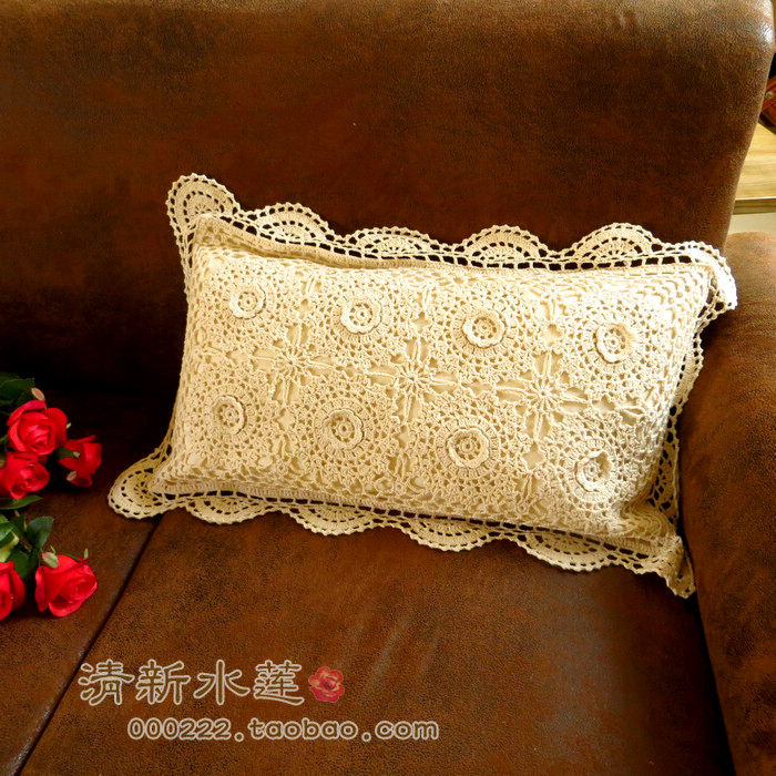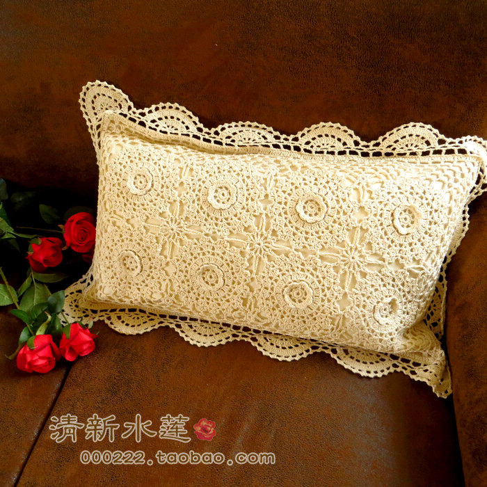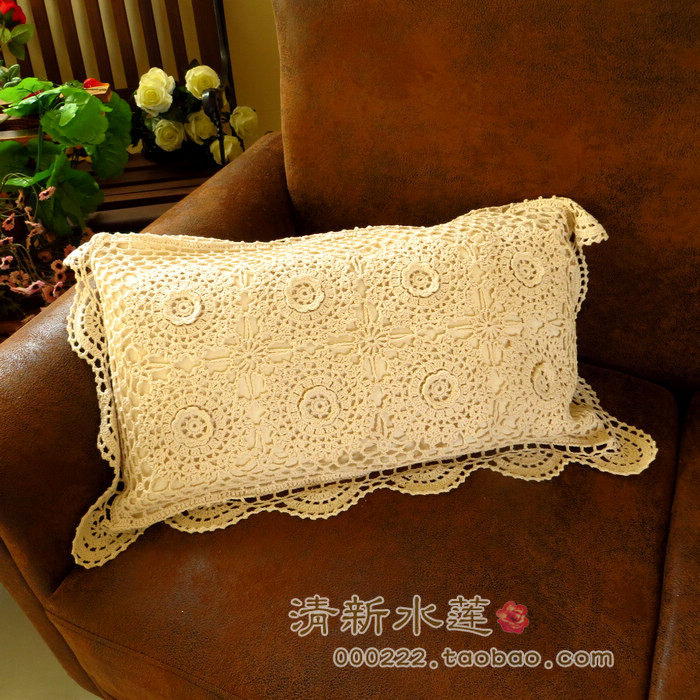 Fresh Water Lotus Pure Cotton Hand Crochet Hook Stitch Solid Hook Flowers Weave European And European Style Countryside Field Garden Hug Waist Pillowcase With Core
