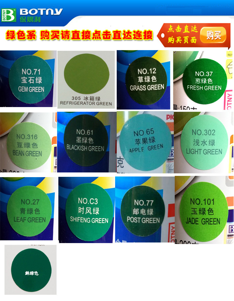 Jade green grass green fresh green dark green automatic hand spray paint car furniture metal anti-rust water-based paint Botny
