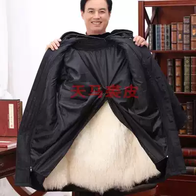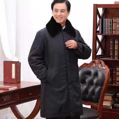 Sheepskin jacket lengthened sheepskin coat thickened autumn and winter genuine leather middle-aged men's leather wool integrated lamb velvet cotton coat