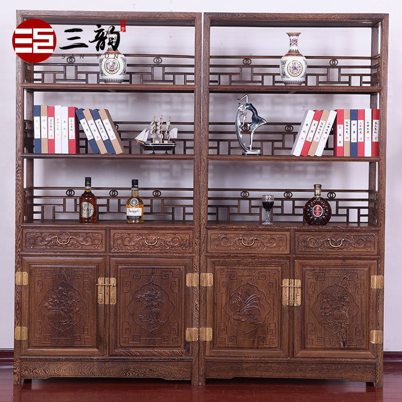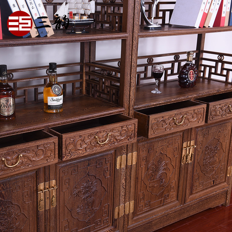 Ming and Qing classical mahogany furniture chicken wing wood bookcase bookshelf solid wood Chinese antique display cabinet storage cabinet