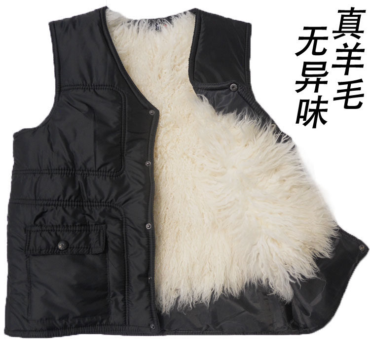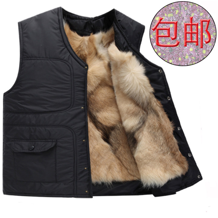 Autumn and winter down vest middle-aged waistcoat men's thickened outdoor leather wool one-piece wool horse clip men's cotton waistcoat