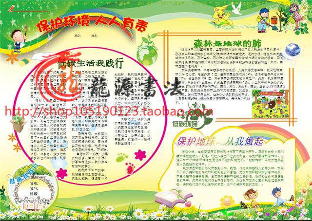 A3 green environmental protection tabloid electronic pictorial finished computer handwritten newspaper environmental protection briefing template report